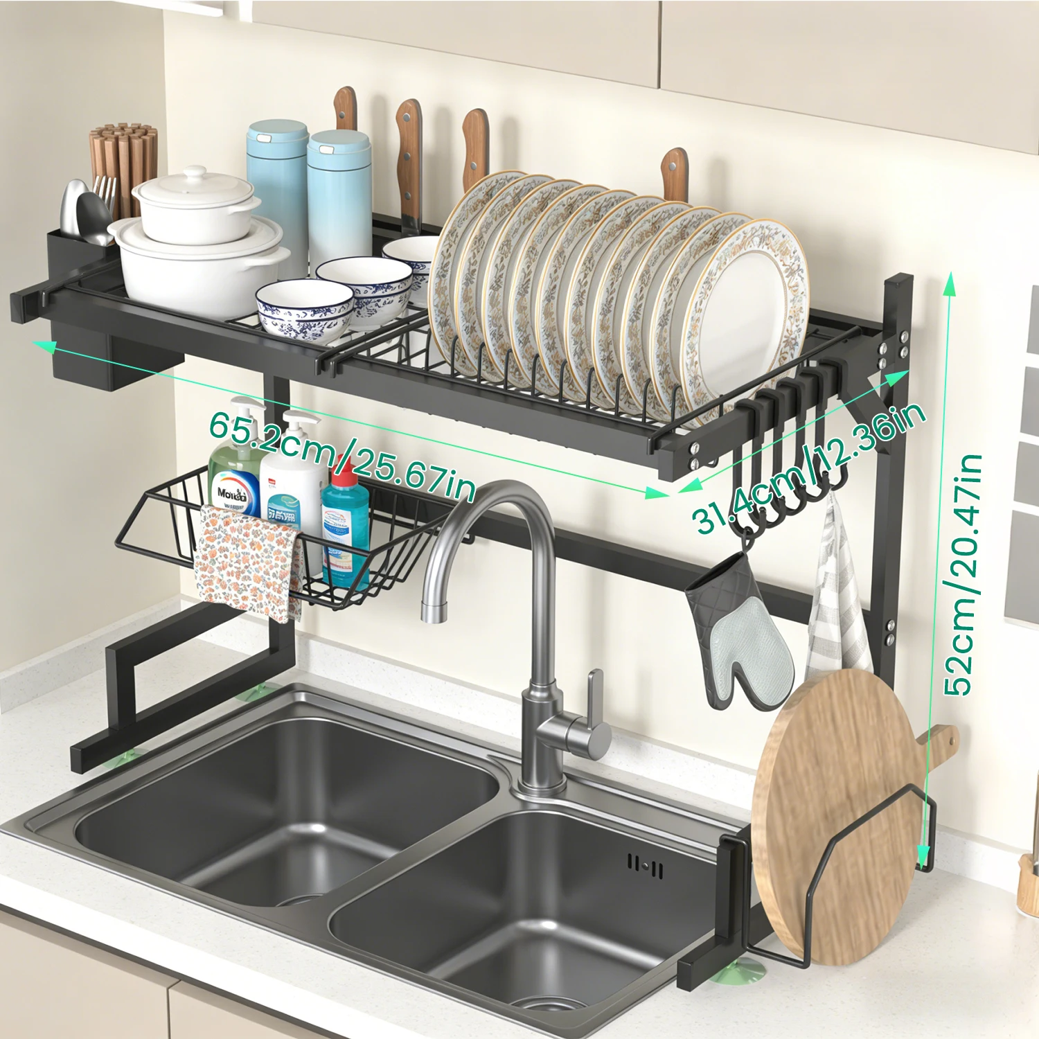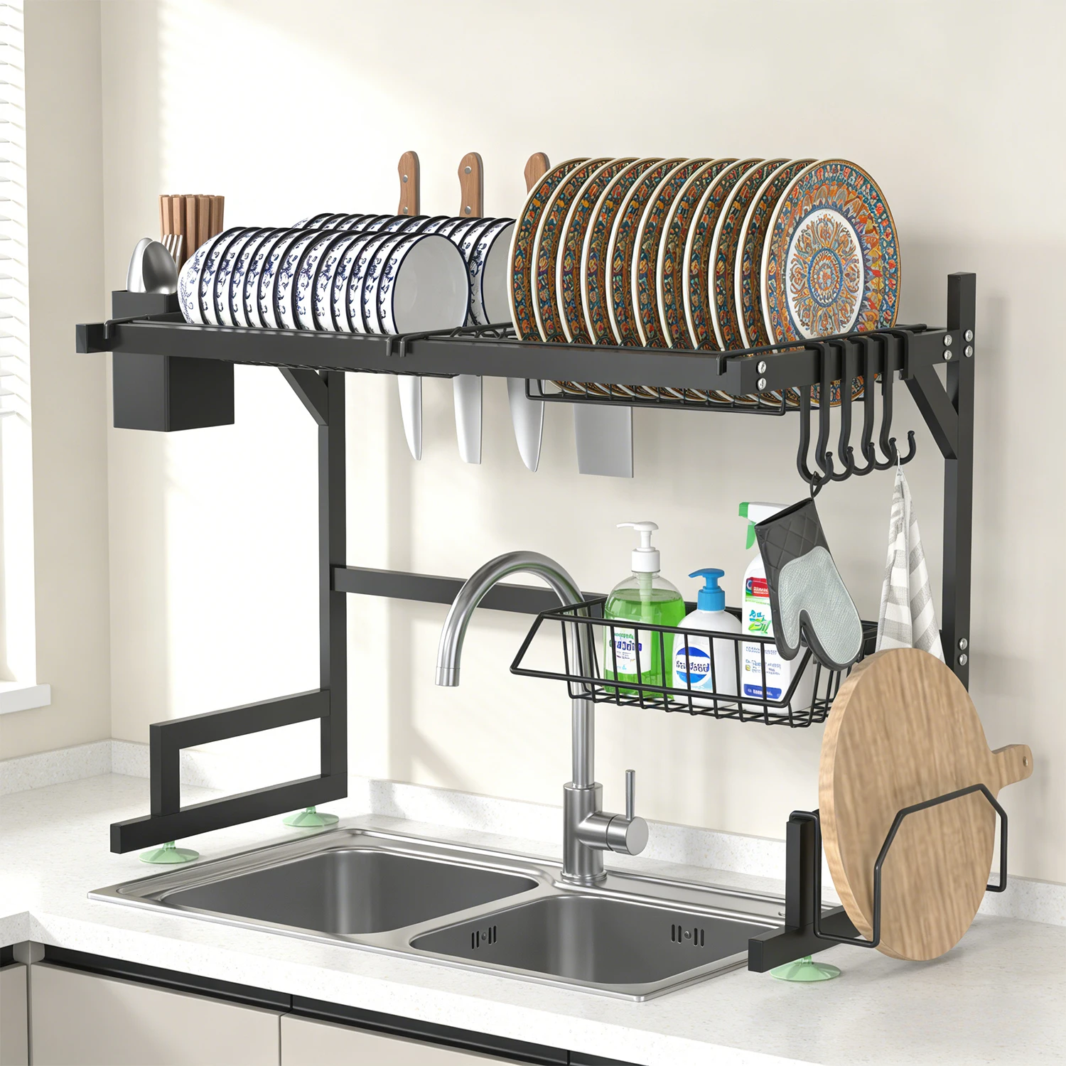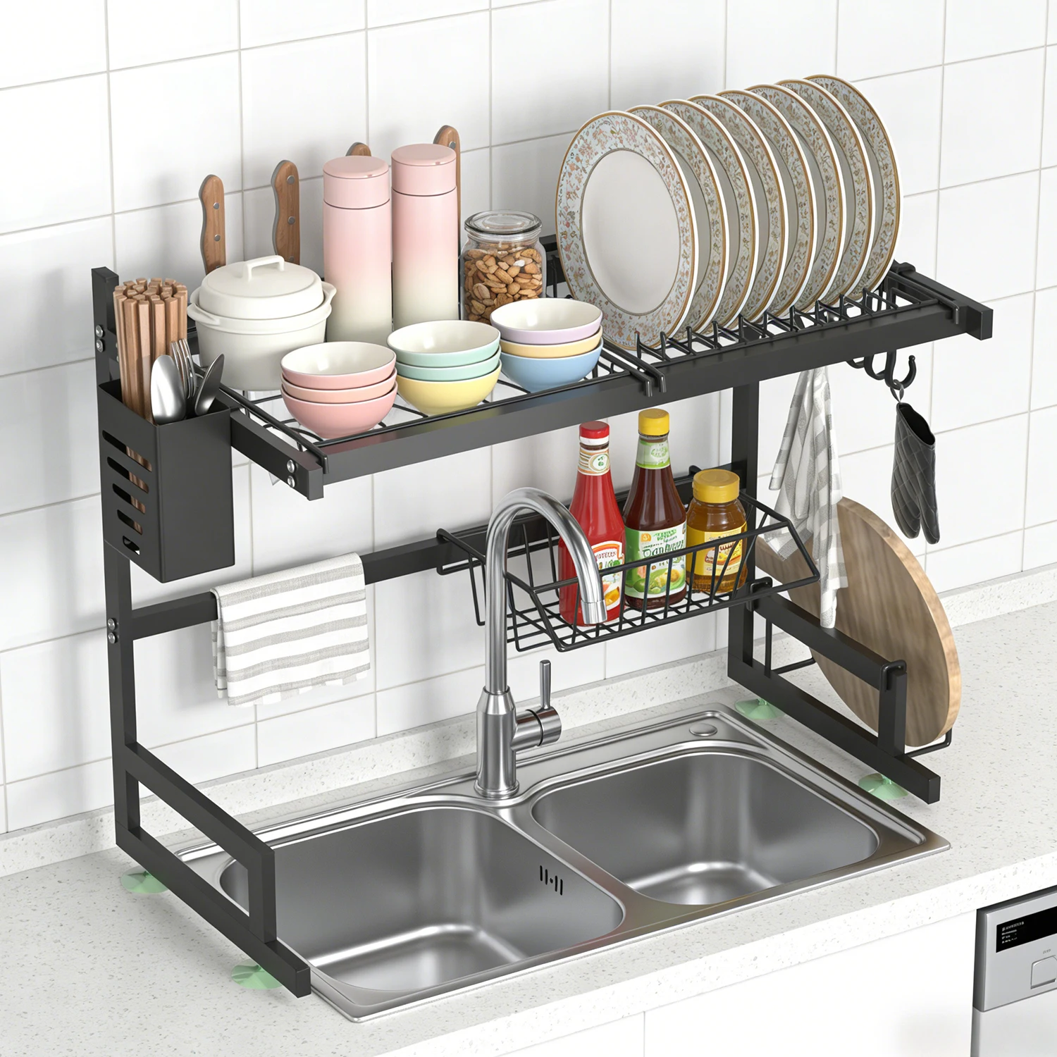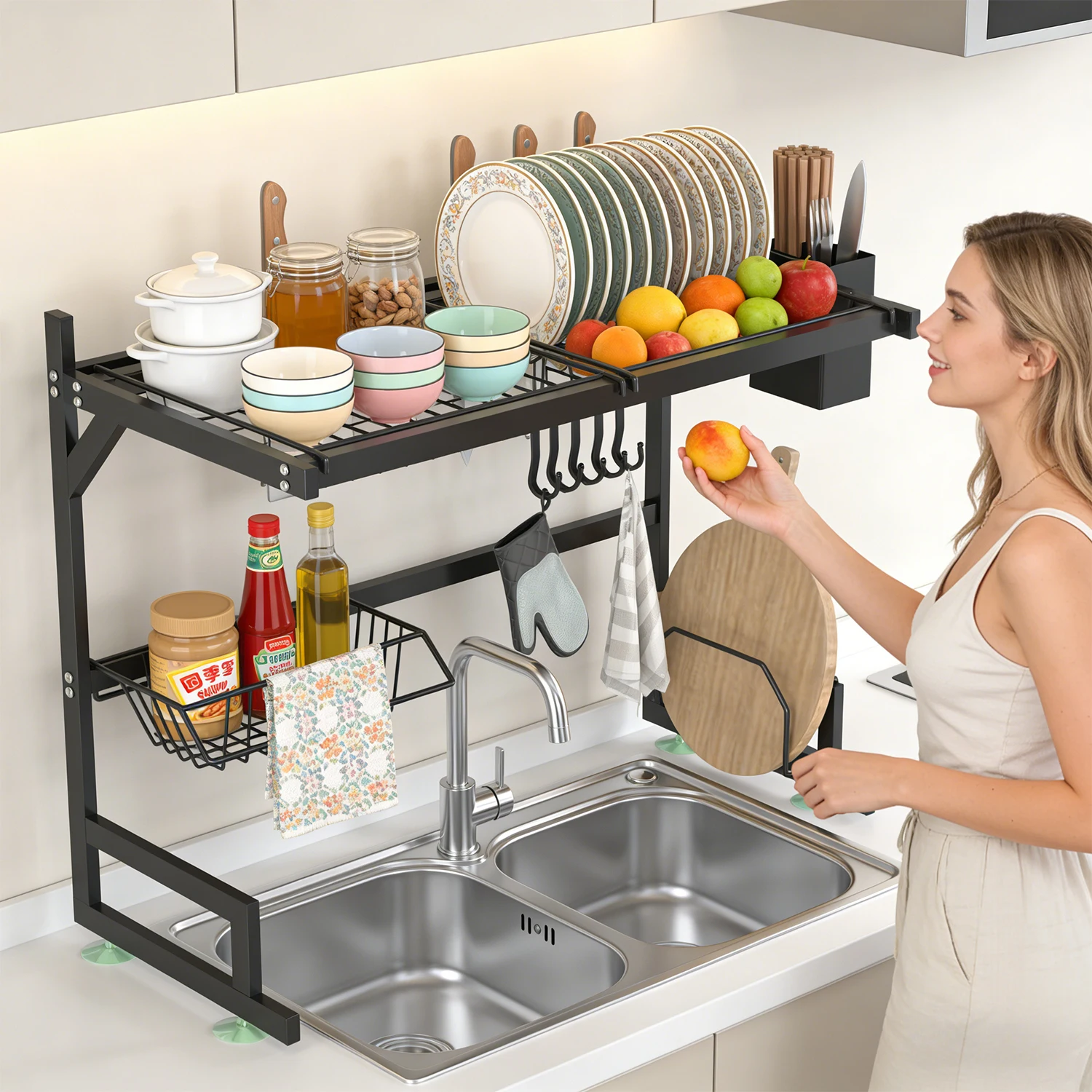 Dish Rack Above Sink - Two-Tier Large Capacity Draining Rack with Knife and Utensil Holder Home Decor