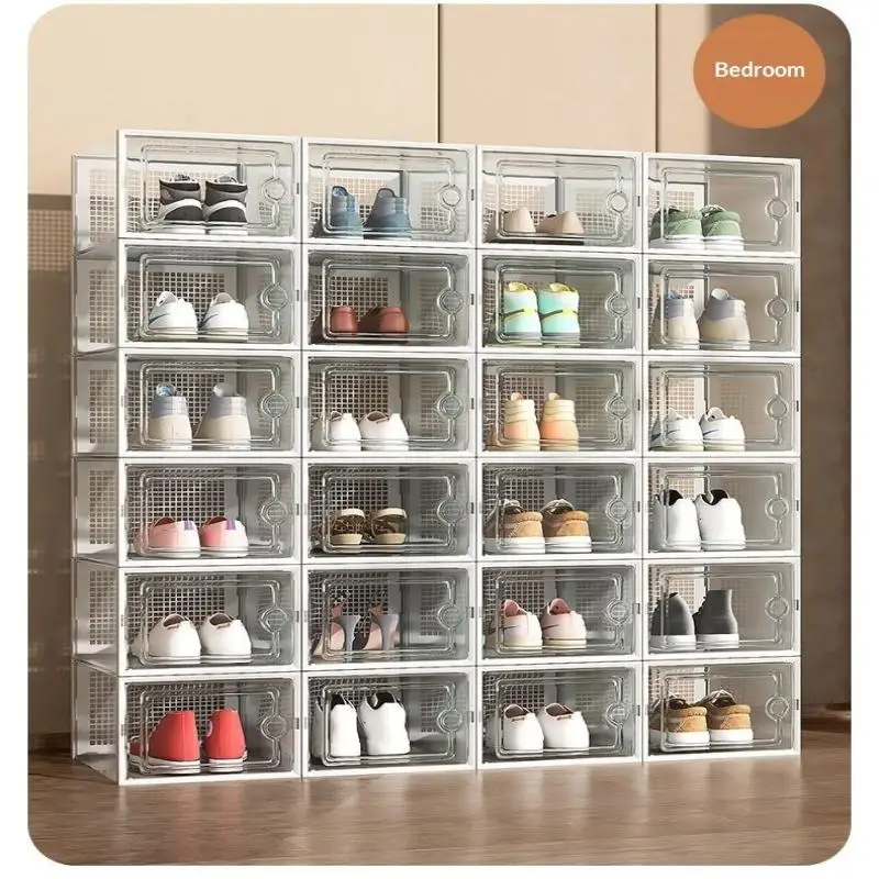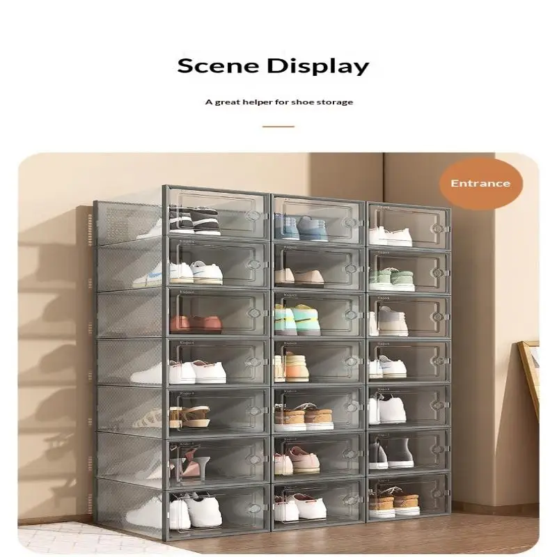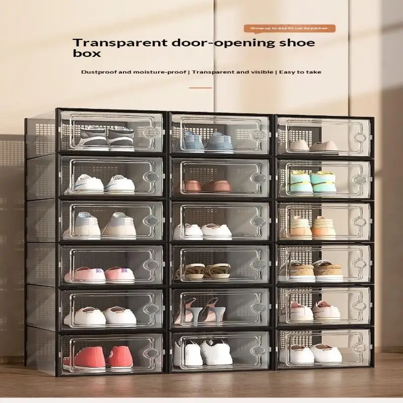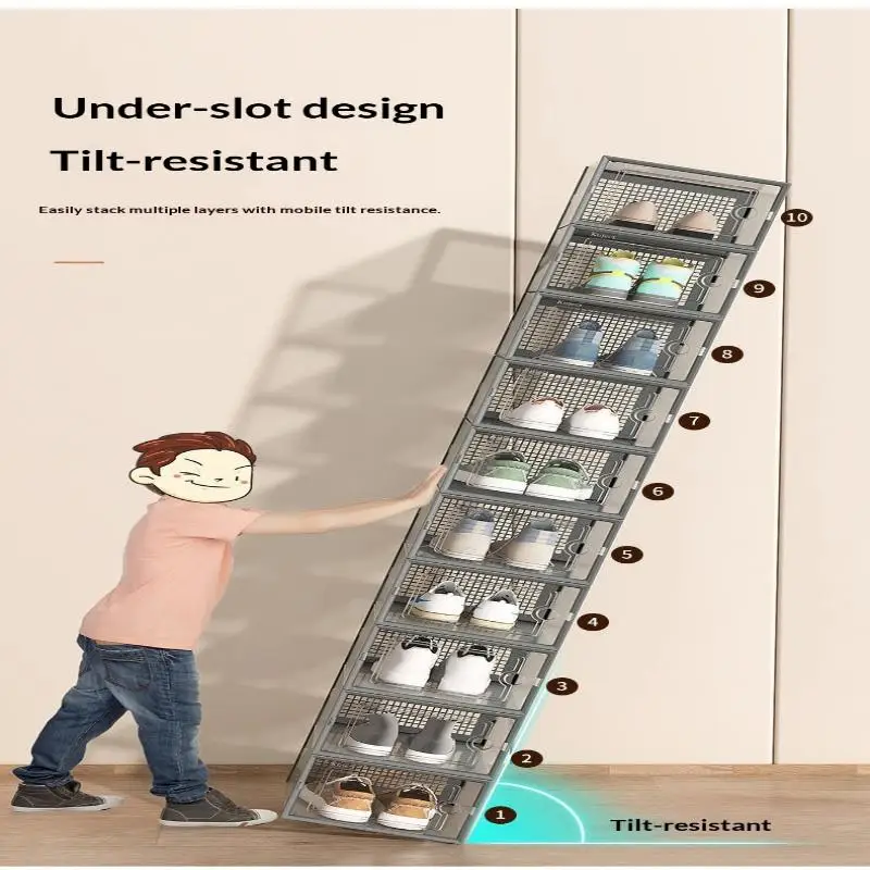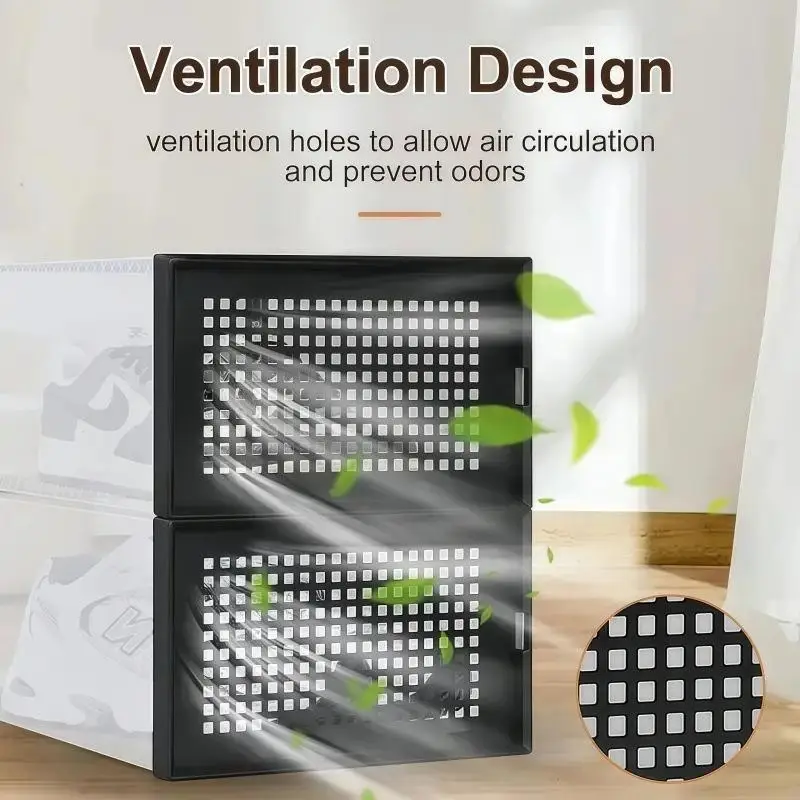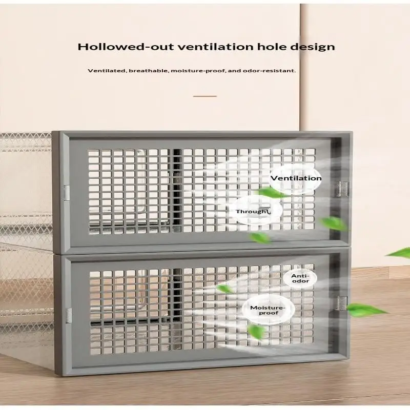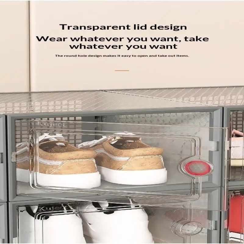 This shoe box organizer features a dust-proof design, keeping your sneakers clean and protected from dirt.